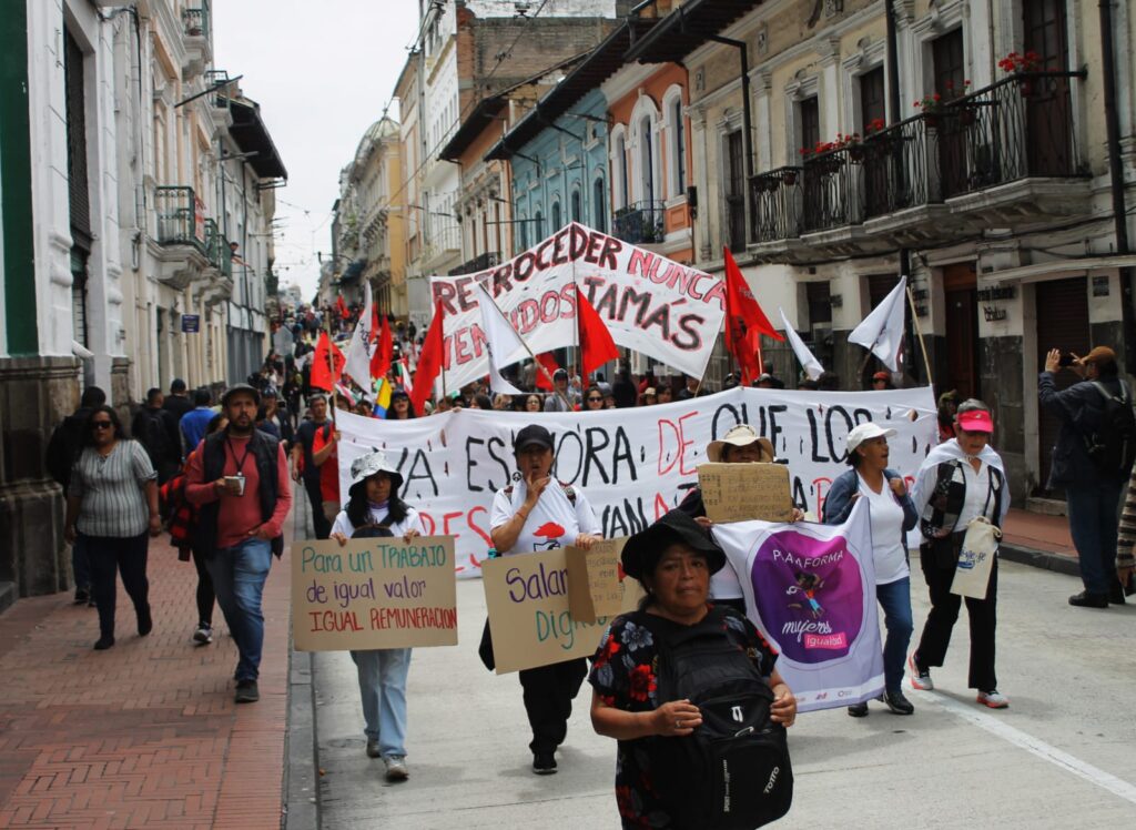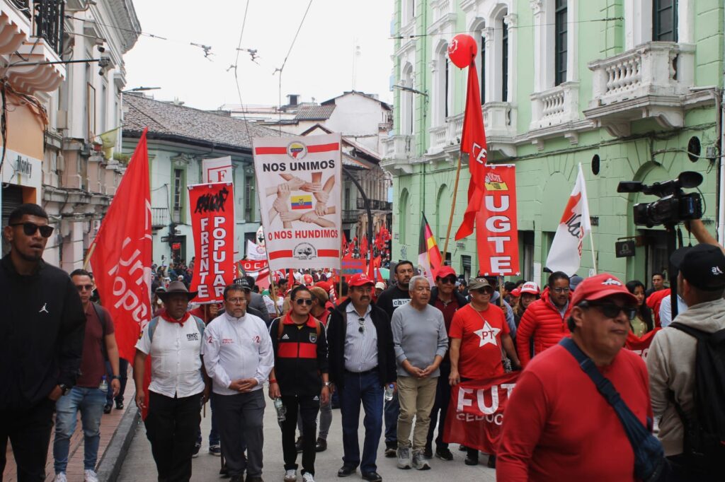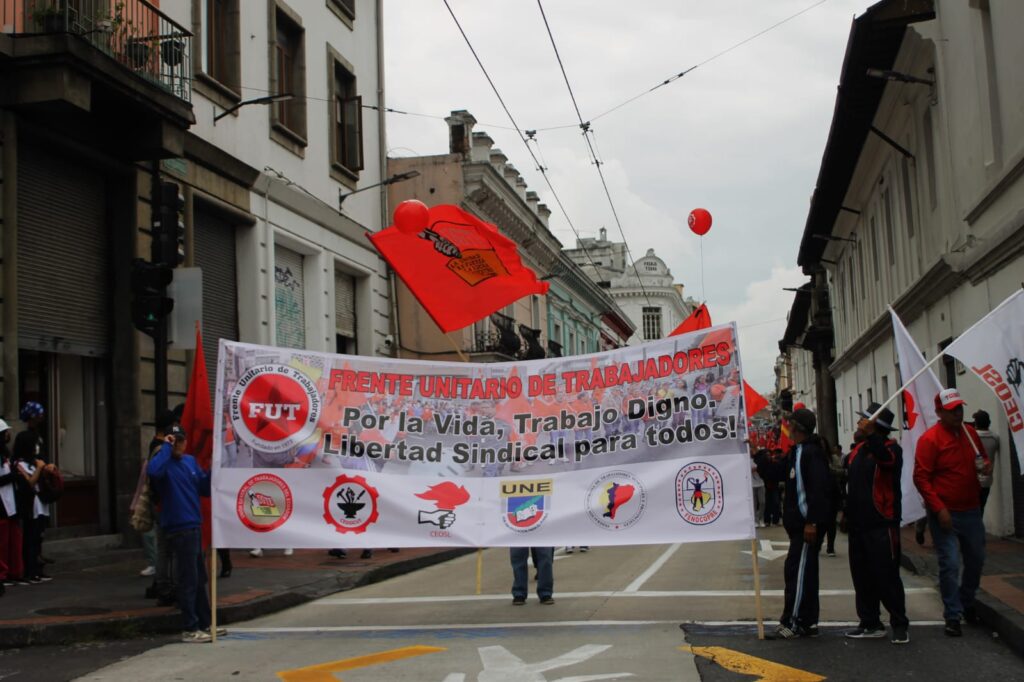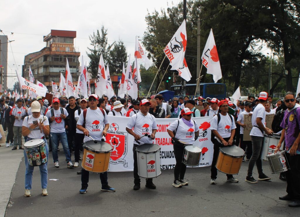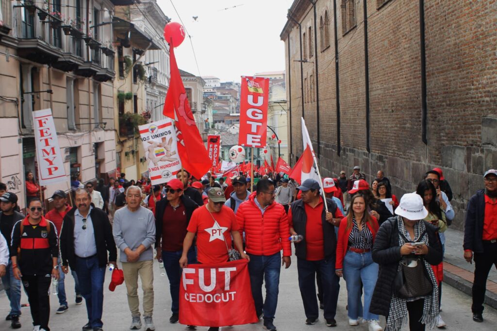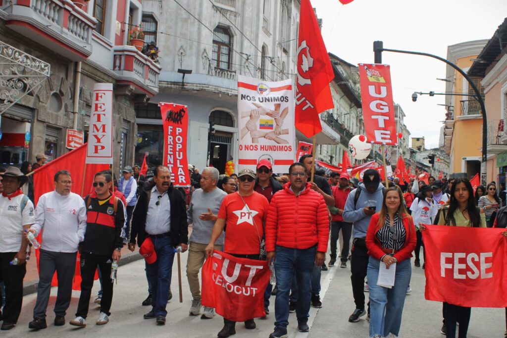 En Ecuador este jueves 1 de Mayo de 2025, las diferentes organizaciones sindicales, colectivos sociales, trabajadores públicos y privados, dirigentes barriales y vecinos, salieron a las calles en varias ciudades del país.