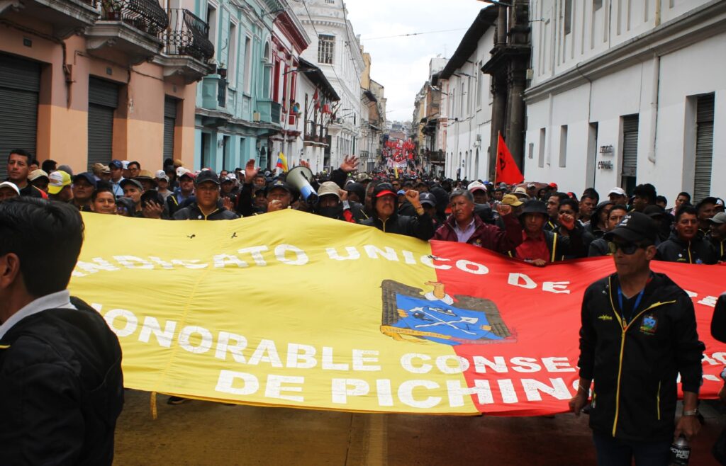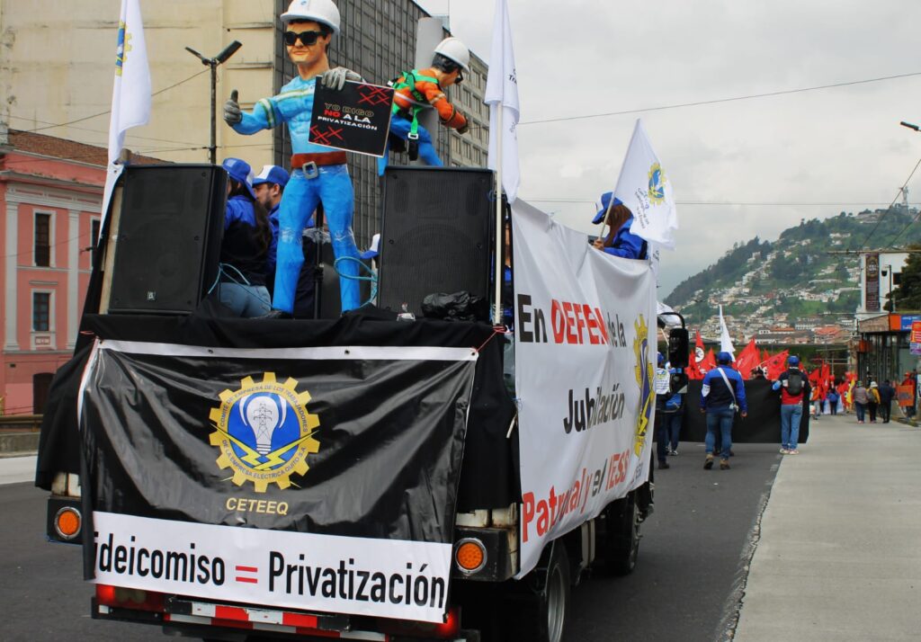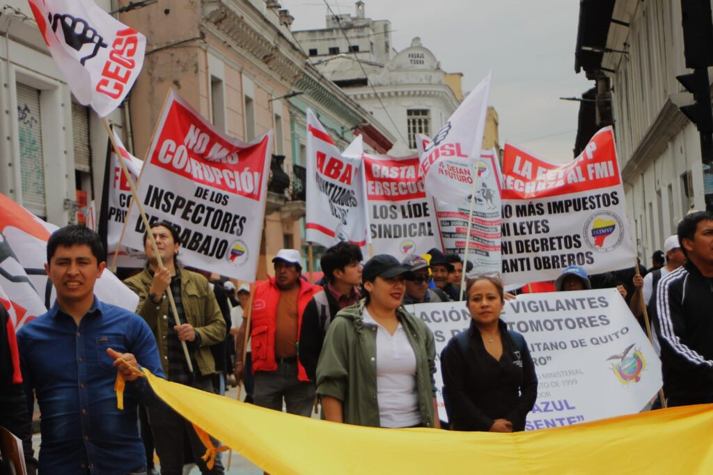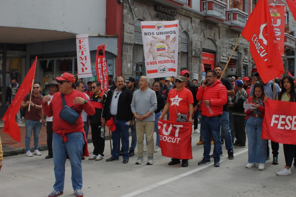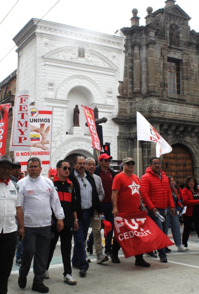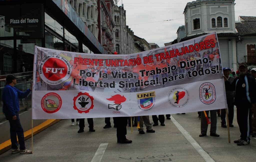 En Ecuador este jueves 1 de Mayo de 2025, las diferentes organizaciones sindicales, colectivos sociales, trabajadores públicos y privados, dirigentes barriales y vecinos, salieron a las calles en varias ciudades del país.