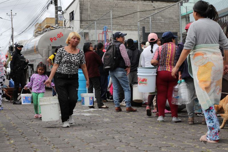 QUITO,ECUADOR.- Para atender a los pobladores del sur de Quito, el Municipio de Quito activó una estrategia que provee de agua a seis sectores del sur que se encuentran desabastecidos de agua potable, la entrega del líquido vital es gratuita.