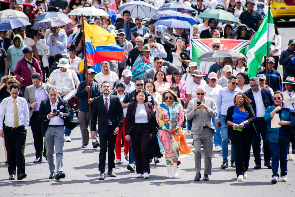 La movilización fue encabezada por la presidenta de la Asociación de Municipalidades Ecuatorianas, Yuri Colorado, quien, junto a representantes municipales y ciudadanos, participó en una caminata que partió desde el Parque El Arbolito y culminó en la Corte Constitucional del Ecuador.