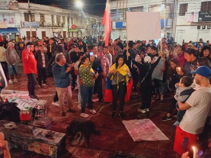 IMBABURA, ECUADOR.-La intensa jornada de este lunes 29 de septiembre culminó con una vigilia en la Plaza Alejandro Pasquel Monge, conocida como del Obelisco. Desde las 18:30 comenzaron a llegar grupos de personas en automóvil, en bicicleta o a pie. Allí, a los pies del monumento icónico, se había colocado una bandera de Ecuador, un ataúd simbólico y …