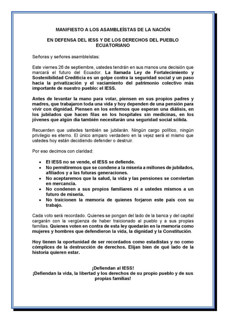 Hoy es un día clave en la historia del Instituto Ecuatoriano de Seguridad Social IESS. Este día los asambleístas se reunirán a partir de las 10h00, en el Pleno de la Asamblea Nacional del Ecuador para tratar en segundo debate la Ley económica Urgente denominada Ley de Fortalecimiento y Sostenibilidad Crediticia, remitida por el Presidente …