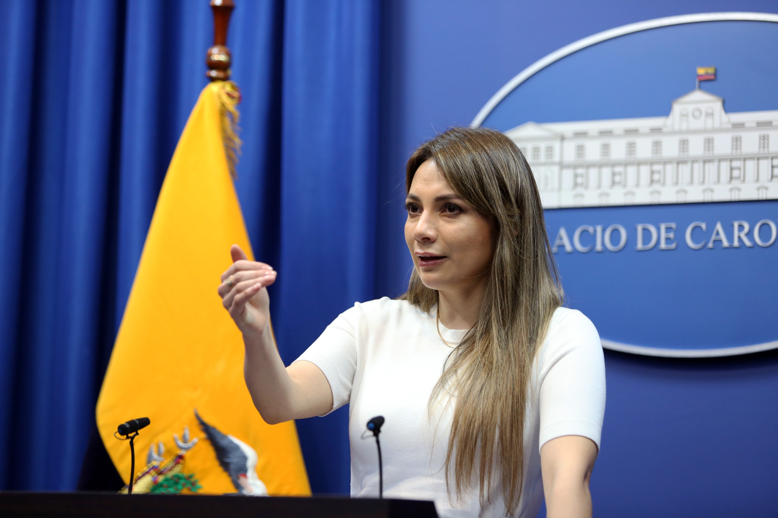 QUITO,ECUADOR.- La mañana de este lunes la vocera presidencial, Carolina Jaramillo Garcés, comunicó a la ciudadanía tres anuncios de relevancia nacional: intervención policial en cinco instituciones de Durán; Ecuador e Italia concretan un canje de deuda para programas de seguridad; y nuevos beneficios para el agro, generando un ahorro directo de USD 2 millones para el sector.