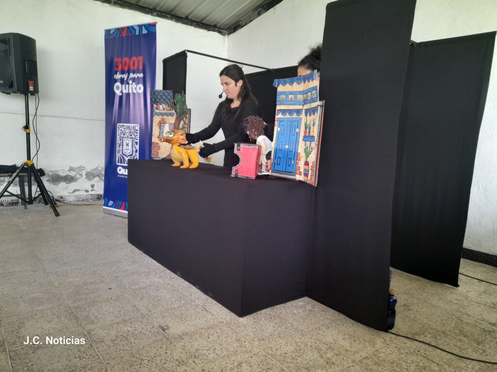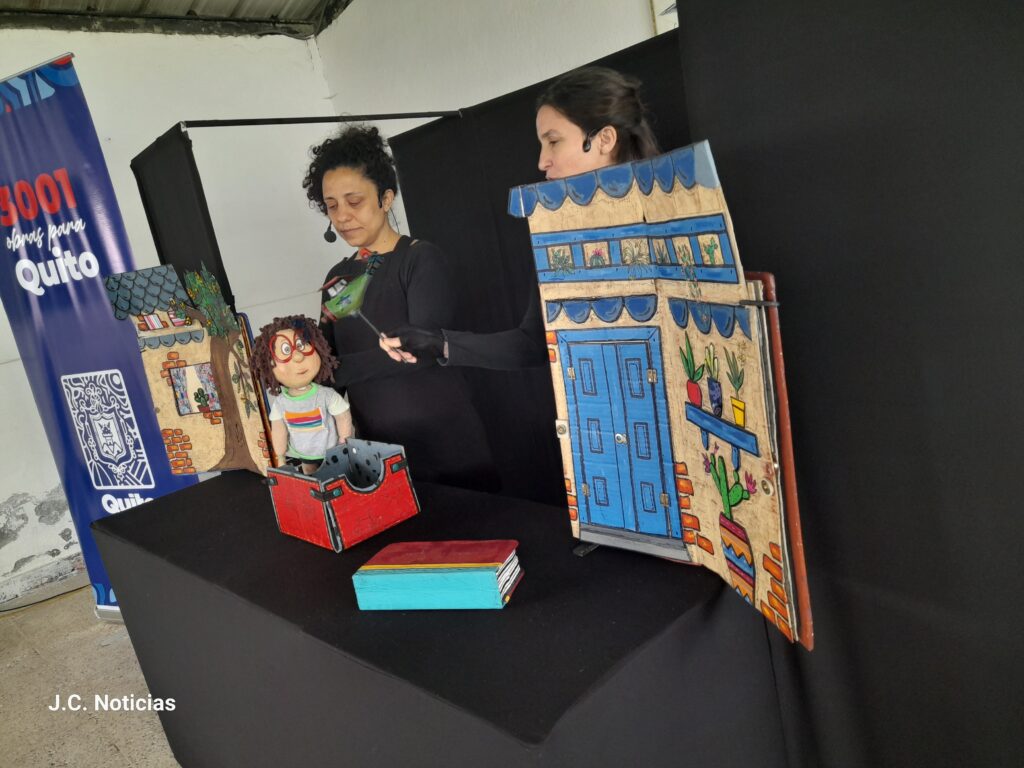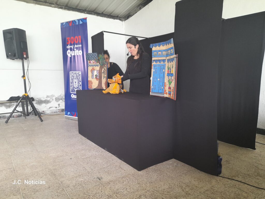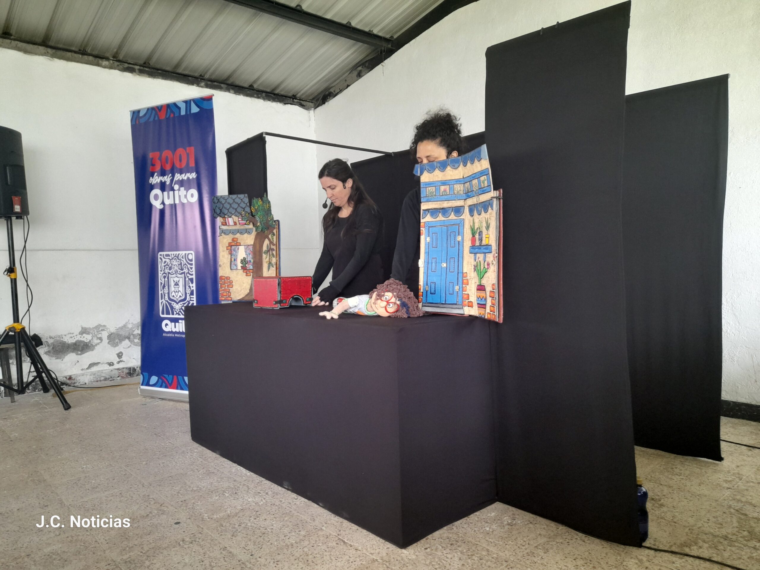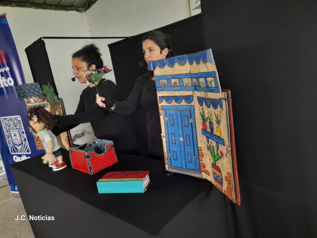 En el Barrio La Florencia en el sur de Quito, la alegre y emotiva obra de Títeres: Cami y el Dragón fue presentada por las reconocidas titiriteras: Lucía Dimauro del Grupo de Teatro Piedra Libre de Argentina y Mónica Evangelista del Grupo de Títeres La Chichina de Argentina.
