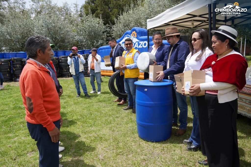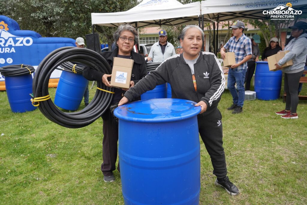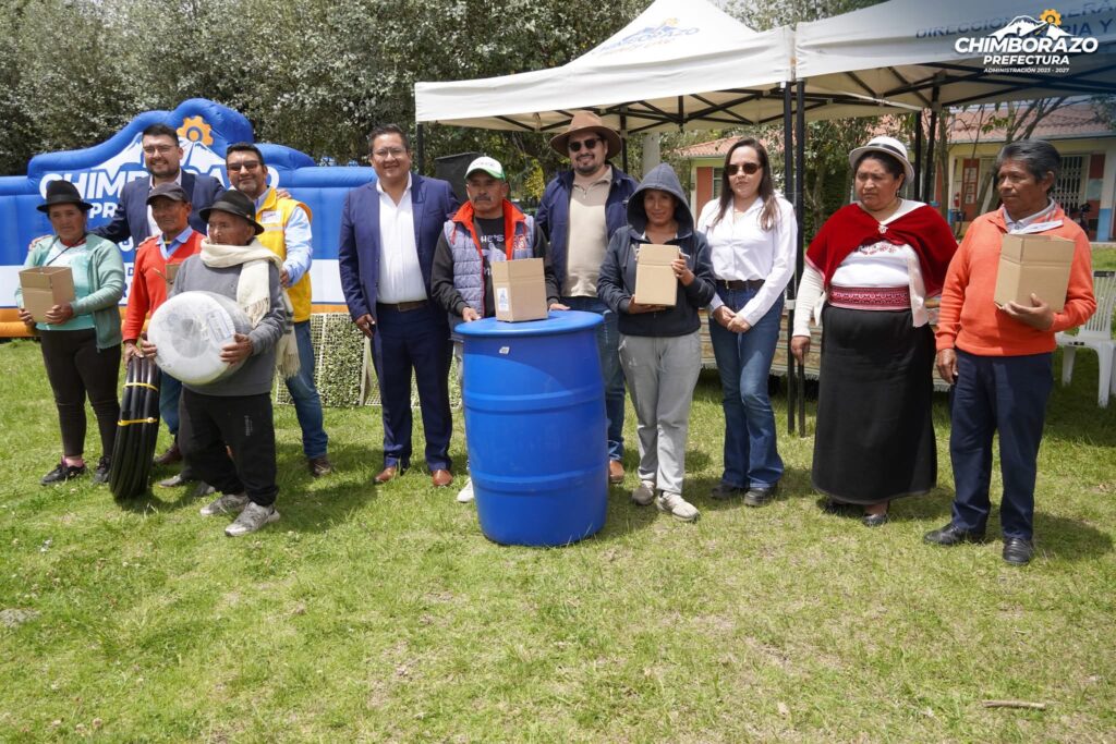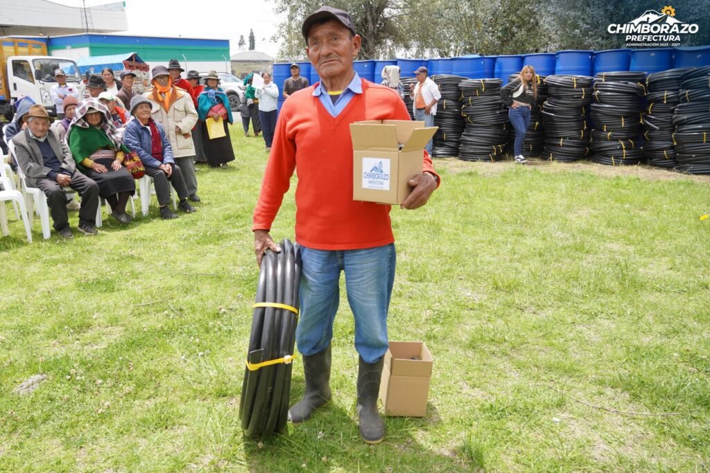Durante la jornada se realizó también la entrega de 122 kits de riego por goteo, que serán instalados en huertos familiares de hortalizas, beneficiando a 117 familias de los cantones Guano y Riobamba, con el objetivo de fortalecer la seguridad alimentaria en territorios que presentan limitaciones en el acceso al agua de riego.