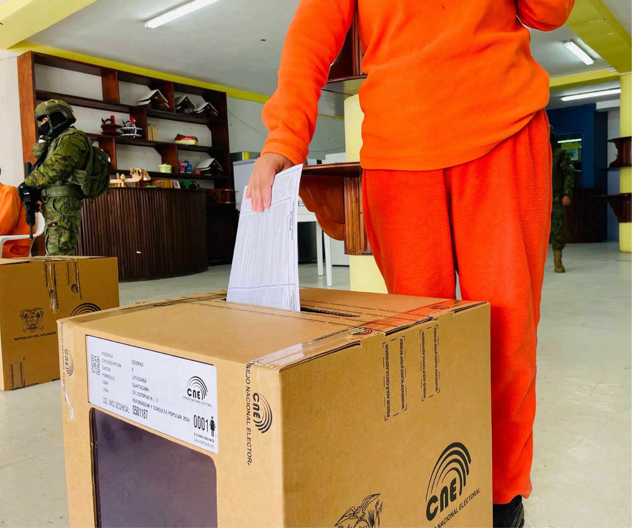 Los votos de las Personas Privadas de la Libertad, así como los del proceso de Voto en Casa, permanecerán en custodia de las Fuerzas Armadas en las bodegas de las Delegaciones Provinciales, y serán contados en presencia de organizaciones políticas, sociales, observadores nacionales e internacionales y medios de comunicación, este domingo el 21 de abril, a partir de las 17h00, cuando las Juntas Provinciales Electorales instalen la Sesión Permanente de Escrutinio.