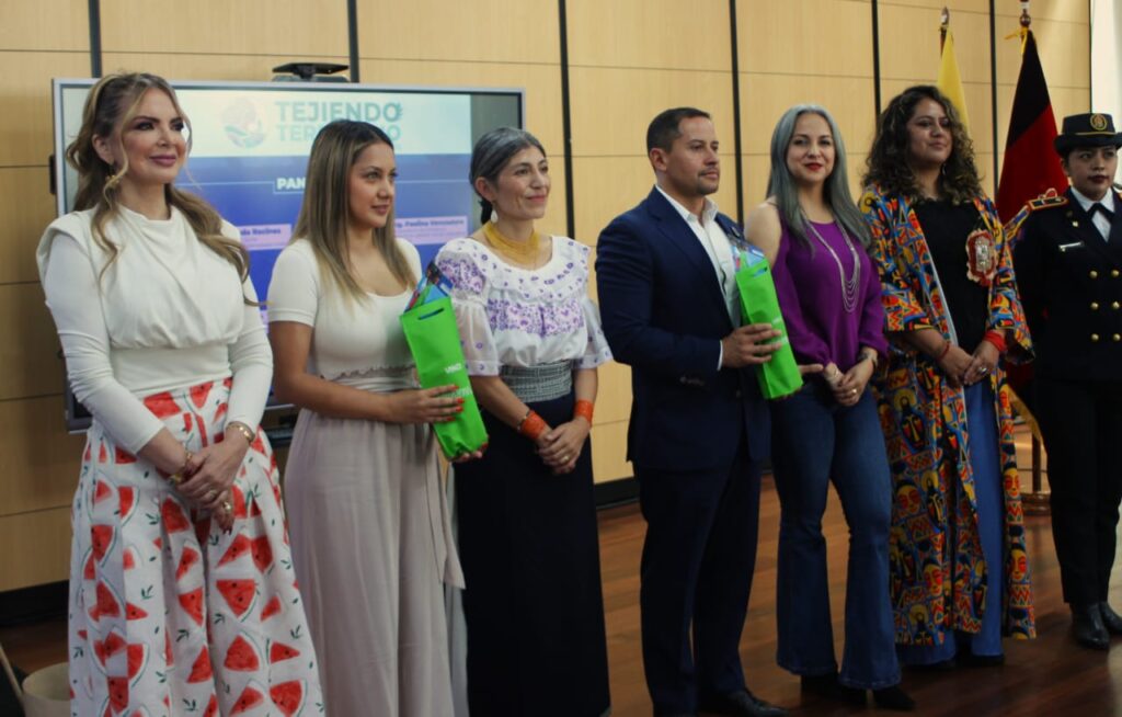 El Conversatorio «Tejiendo Territorio», contó con la participación de las siguientes autoridades, Fernanda Racines, Vicealcaldesa de Quito, Paolina Vercoutére Quinche, Viceprefecta de la Prefectura Ciudadana de Imbabura, Esteban Melo Garzon, Administrador Zonal Valle de los Chillos, Vocales del GAD Conocoto, panelistas, invitados especiales y público en general.