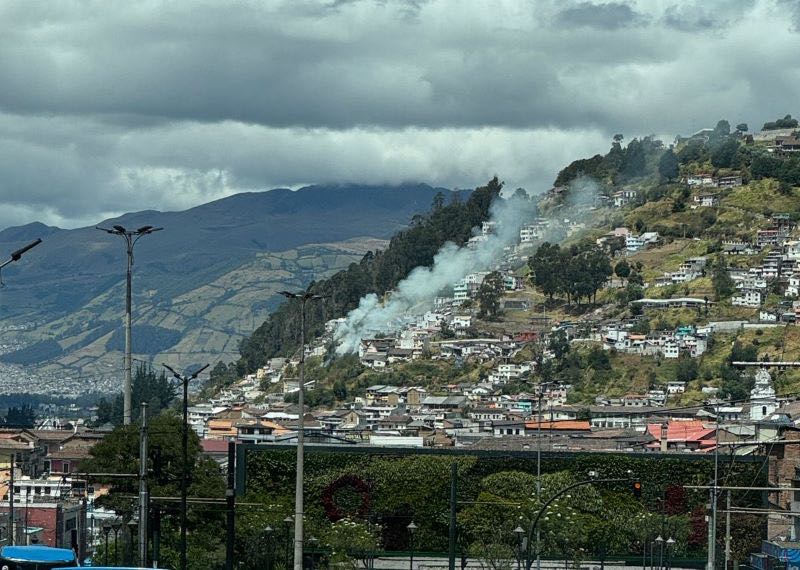 Cuerpo de Bomberos controla quema de desechos en el Panecillo, Quito