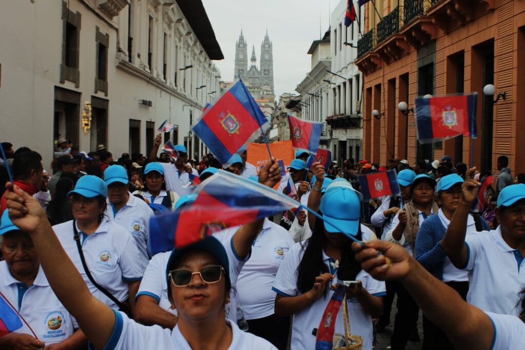 El alcalde Pabel Muñoz, quien encabezó el desfile y acompañó a los comerciantes, manifestó que «por invitación de los concejales Héctor Cueva y Juan Báez me he sumado a caminar junto con los mercados, porque si los mercados le saludan a Quito, el alcalde se suma, los concejales y las secretarías se suman a ese saludo a la ciudad más linda del mundo».