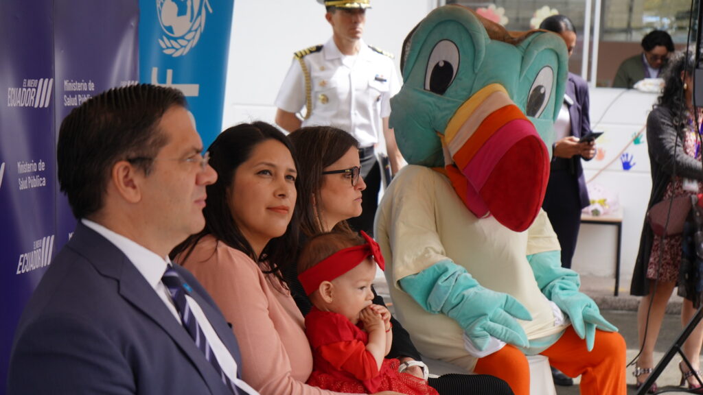 El encuentro emotivo contó con la participación de Máximo, el personaje emblemático de la inmunización en Ecuador, por apoyo de Unicef, quien con un mensaje cargado de energía y