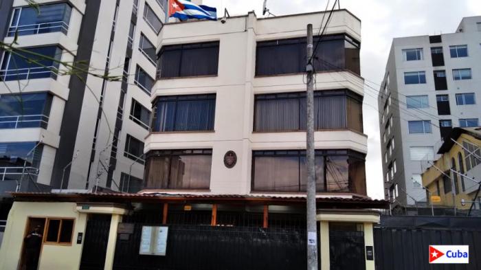 El Ministerio de Relaciones Exteriores de la República de Cuba, en respuesta a la arbitraria, injustificada y hostil decisión del gobierno de la República del Ecuador de declarar persona non grata a todo el personal diplomático, consular y administrativo cubano acreditado en ese país, ante la imposibilidad de mantener una representación diplomática, ha decidido prescindir del inmueble utilizado como sede de la Embajada de Cuba, y retirar, con efecto inmediato, todos los atributos y símbolos identificativos de su misión diplomática en Quito.