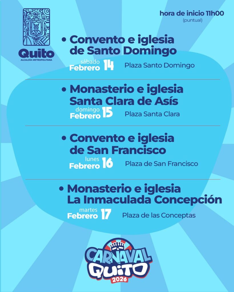 Para acceder a la Agenda Vive el Carnaval, recorre el Patrimonio Religioso, solo debe inscribirse la página web patrimonio.quito.gob.ec oportunamente, pues los cupos son limitados.