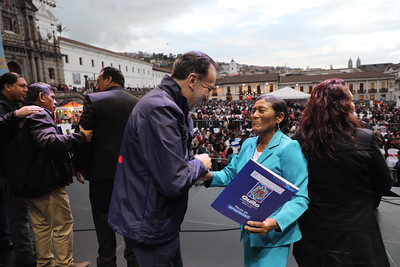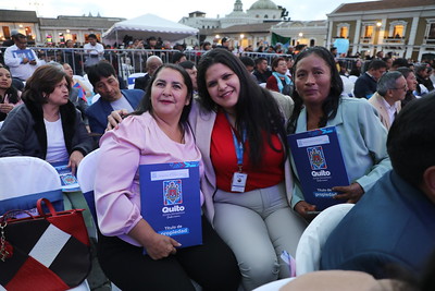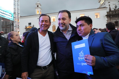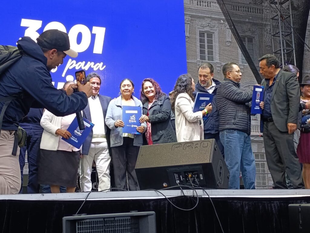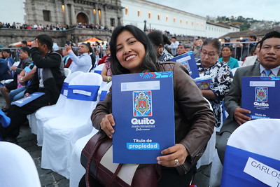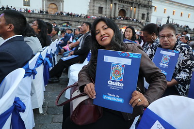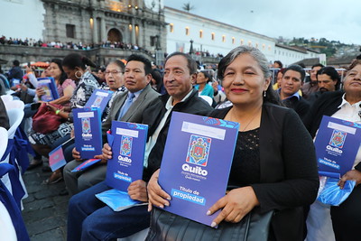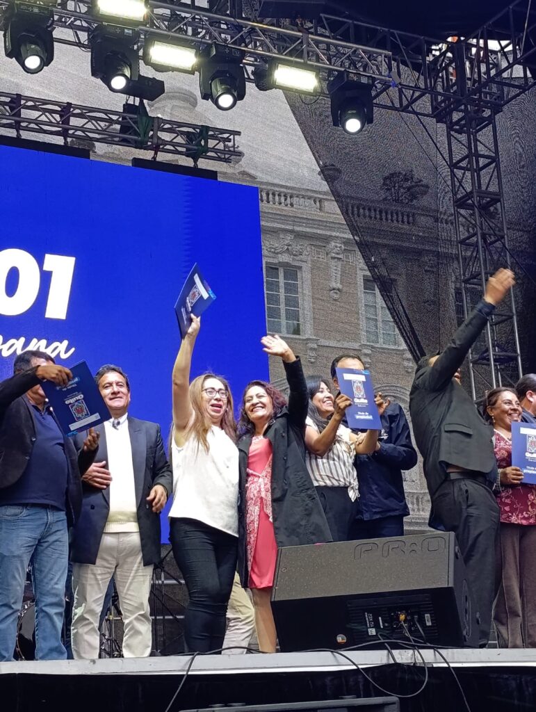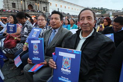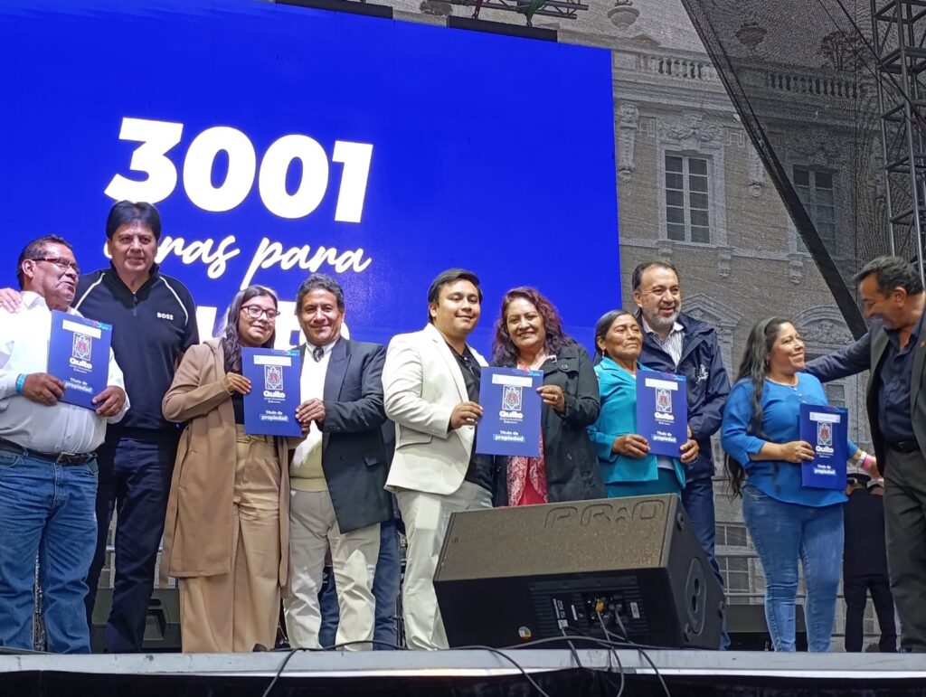 La Plaza San Francisco se llenó de aplausos, música y emoción. Para celebrar a Quito por todo lo alto, el Municipio de Quito entregó este jueves sus títulos de propiedad a 2.621 familias, un papel que para muchos representa décadas de espera, esfuerzo y sueños cumplidos.