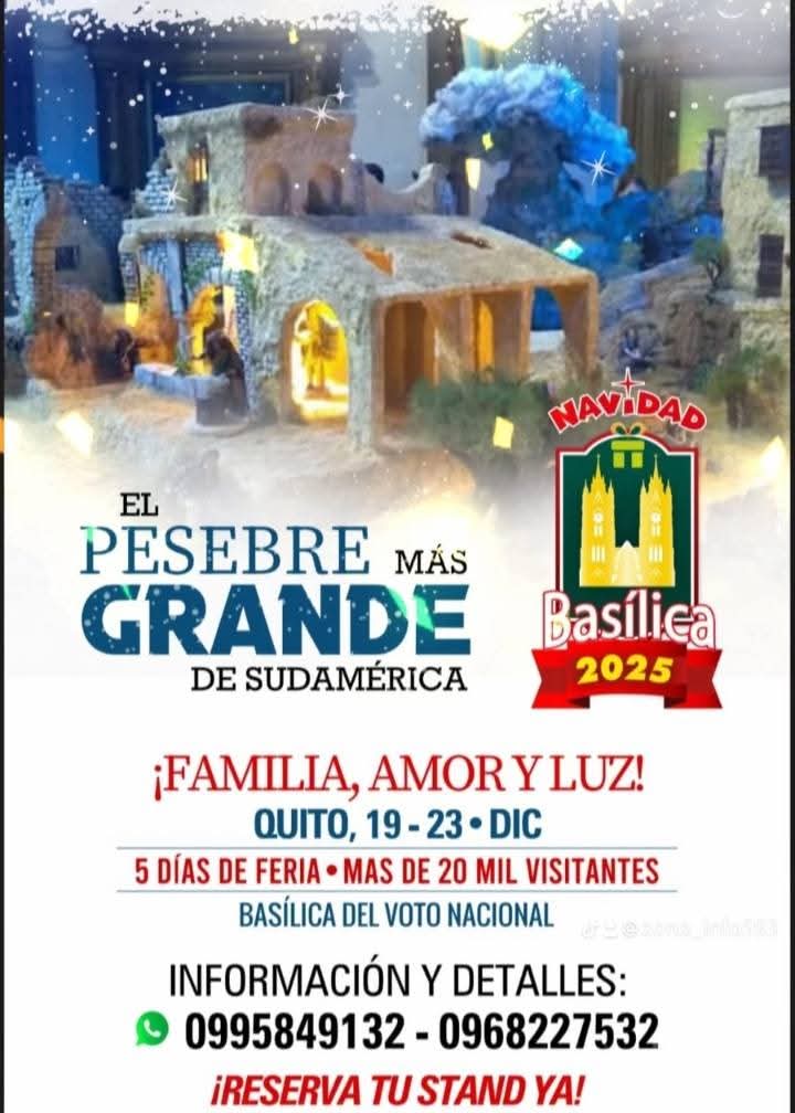 Del 19 al 23 de diciembre de 2025, la plaza interior de la Basílica del Voto Nacional se convertirá en un punto de encuentro para celebrar la temporada navideña con la primera edición de la feria “Familia, Amor y Luz”, un evento que invita a la comunidad a vivir estas fechas desde la tradición, la cultura y la conexión familiar.