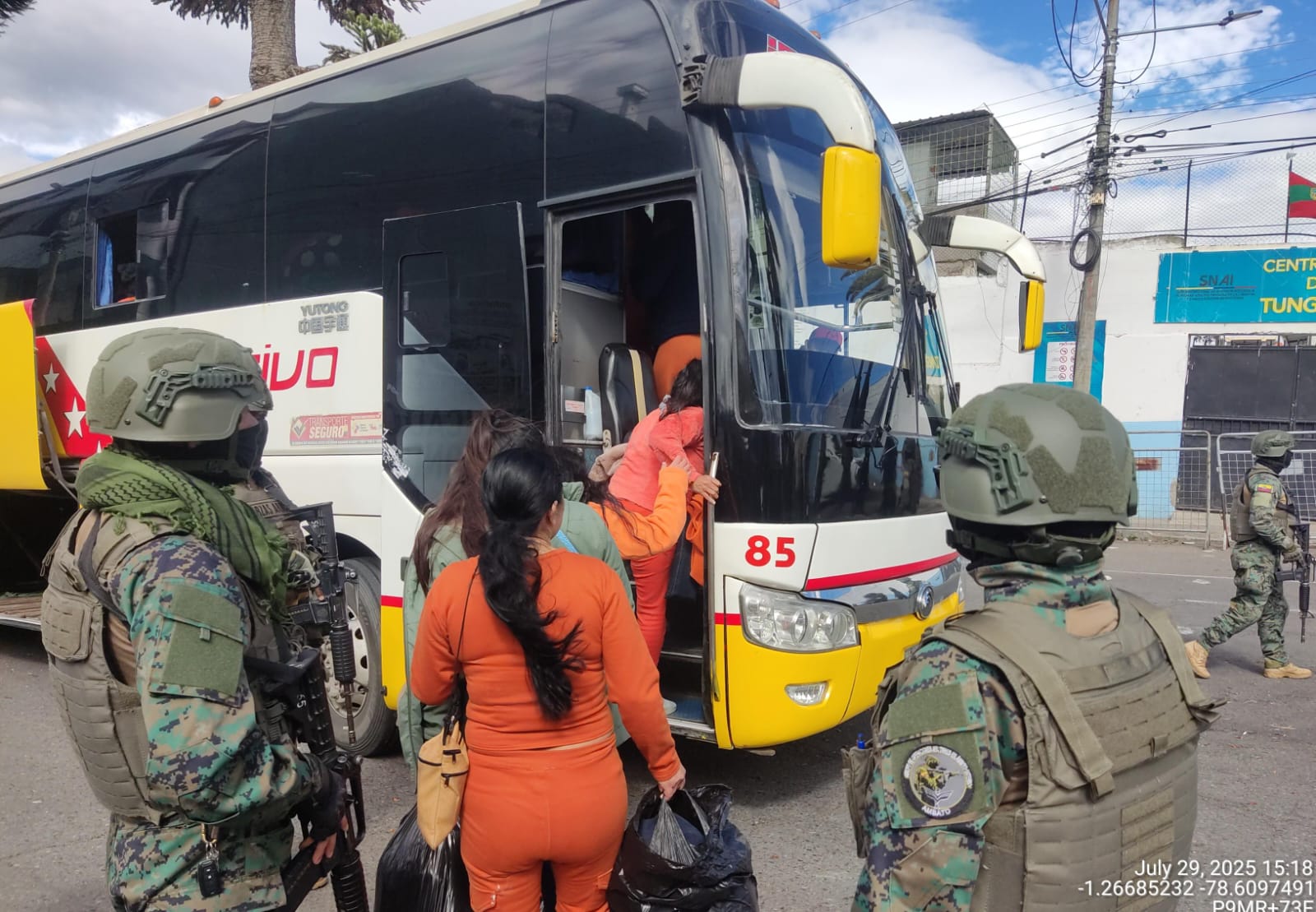 AMBATO,ECUADOR.-| Fuerzas Armadas a través de la FAE en coordinación con la Policía Nacional en apoyo a otras instituciones del Estado brinda seguridad durante el traslado de 42 personas Privadas de Libertad PPL de nacionalidad colombiana desde el Centro de Privación de Libertad CPL Tungurahua hasta el Puente Internacional Rumichaca.