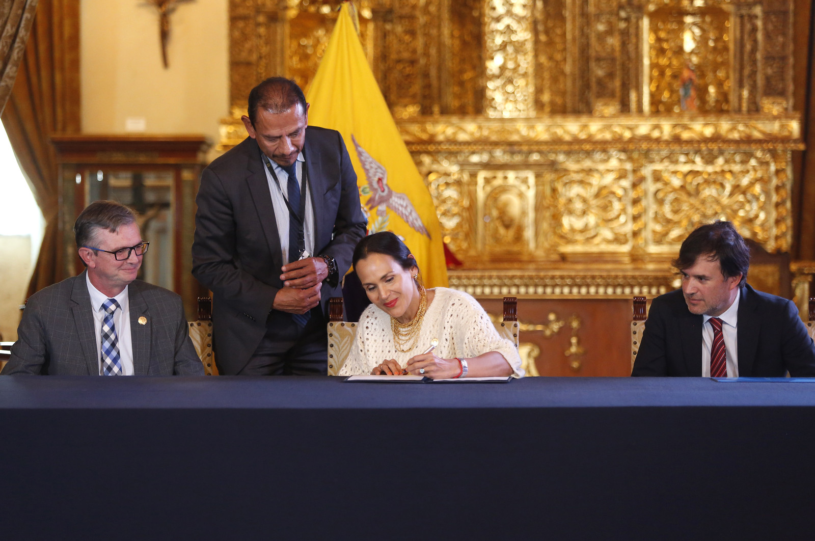 La suscripción estuvo a cargo de Inés Manzano, ministra de Energía y Minas (e), y Eduardo Mora, director país de VillonacoEnergy, en un evento realizado en el Palacio de Carondelet.