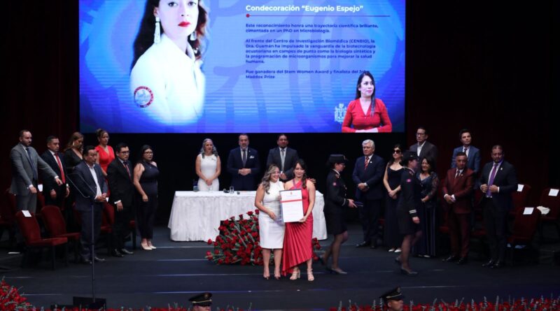 Otro de los reconocimientos más celebrados fue el otorgado a Linda Guamán, quien recibió la condecoración Eugenio Espejo por su valioso aporte a las ciencias biológicas y naturales.