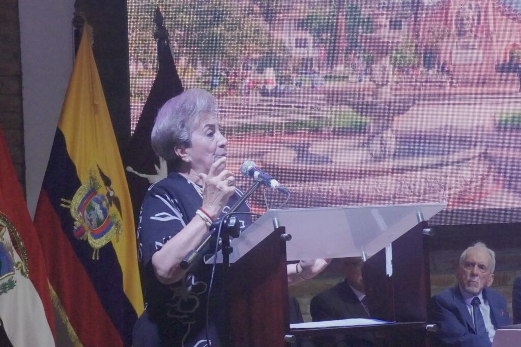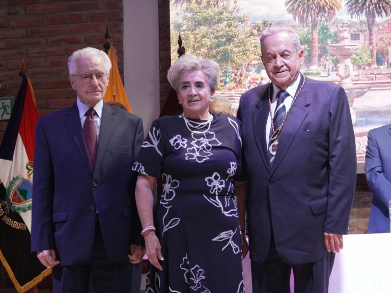 Uno de los momentos más emotivos de la ceremonia solemne fue la entrega de la Medalla “Pilanquí” al licenciado Jorge Valdospinos Rubio, en reconocimiento a su importante trayectoria en el servicio público y su valioso aporte a la cultura provincial al frente de la Fundación “Gonzalo Rubio Orbe”. La Profesora Ruby Estevez, directora del Núcleo de Imbabura de la Casa de la Cultura, realizó la intervención protocolaria de entrega.