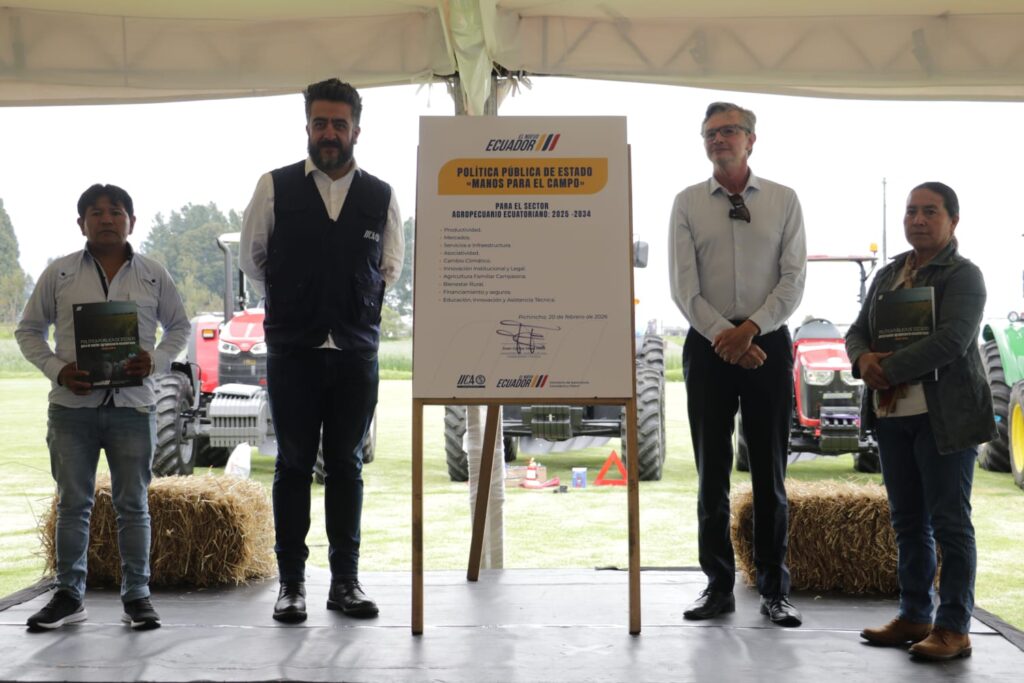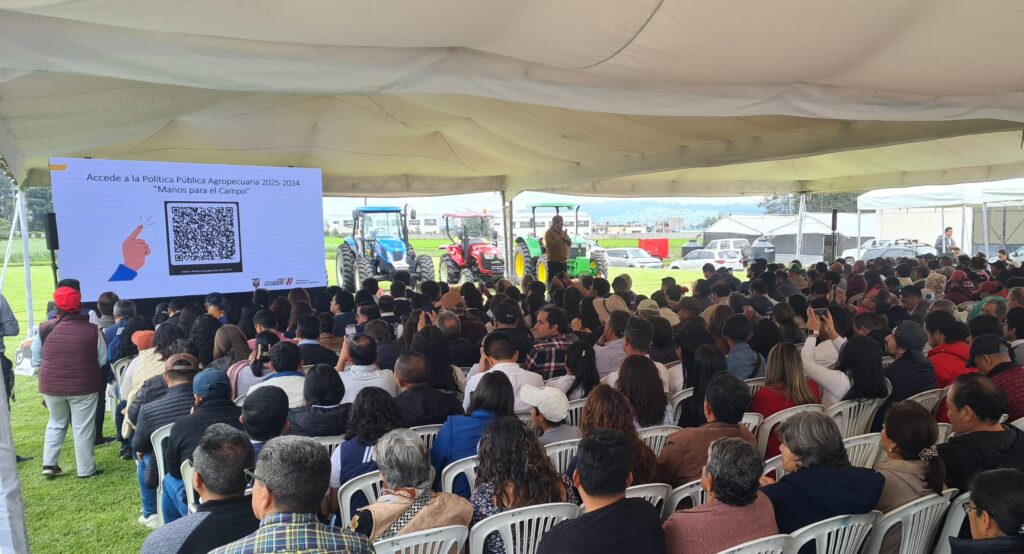 QUITO,ECUADOR.-La Estación Experimental Santa Catalina del INIAP en el sur de Quito, fue el escenario donde se presentó este viernes la Política de Estado para el Sector Agropecuario Ecuatoriano 2025 2034, denominada «Manos para el Campo» que busca impulsar al sector agropecuario de manera sostenible a través de la innovación, investigación y la tecnología, generando seguridad y soberanía alimentaria en el país.