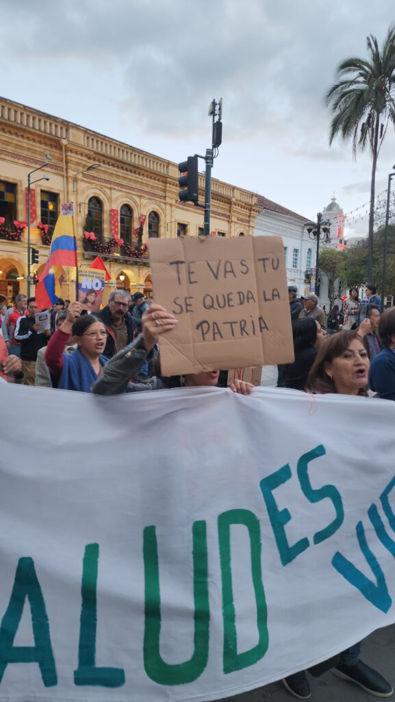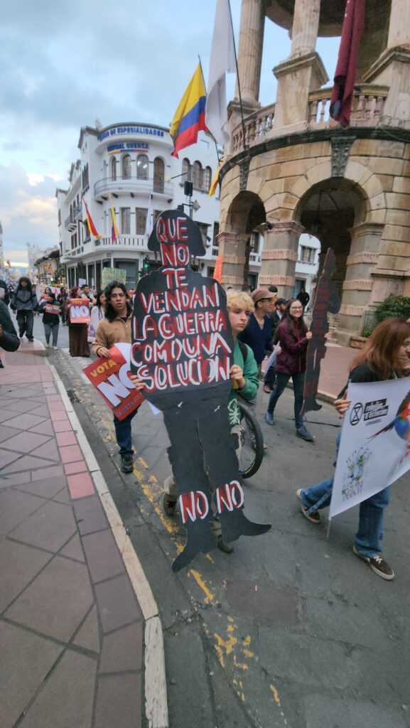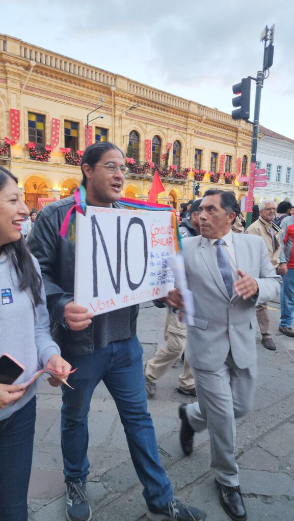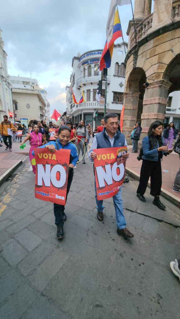 CUENCA,ECUADOR.- A pocas horas del cierre de la campaña del Referéndum y la Consulta Popular convocada por el Presidente de la República Daniel Noboa Azin, la tarde de este miércoles en la ciudad de Cuenca, una masiva marcha con público de todas las edades, recorrió las principales calles de la capital de la provincia del Azuay pidiendo a toda la ciudadanía Votar NO el próximo domingo 16 de noviembre de 2025.