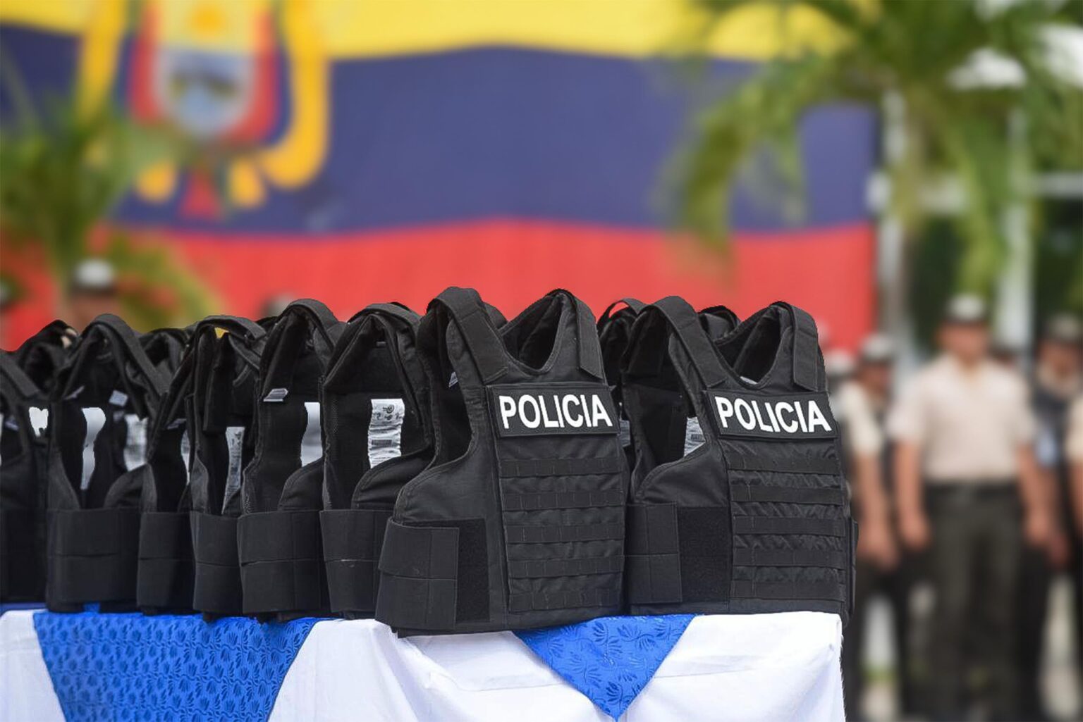 La ministra del Interior, Mónica Palencia, entregó chalecos de protección balística a la Policía Nacional del Ecuador y mostró su respaldo a los servidores policiales que prestan su contingente en Manta.