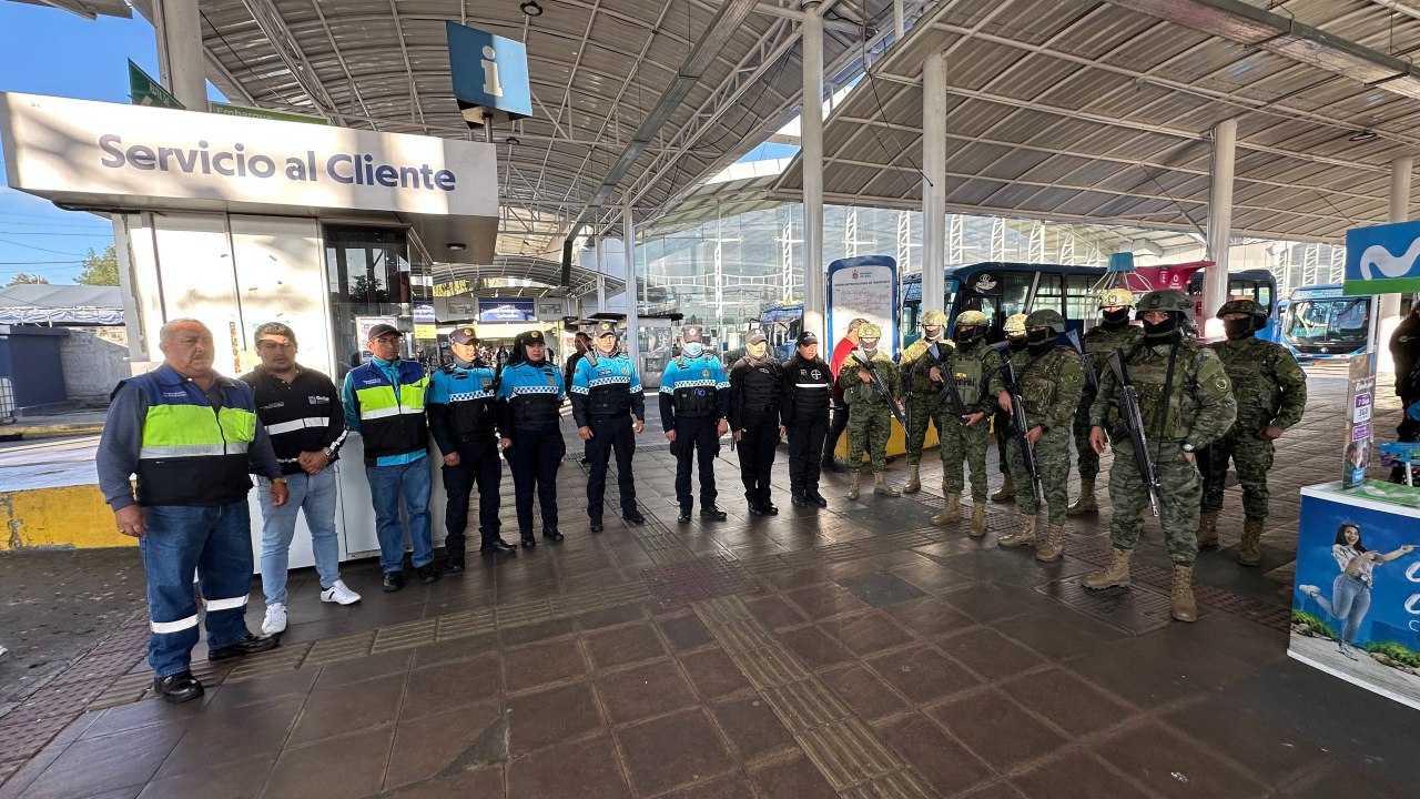 QUITO,ECUADOR.-El Municipio de Quito, en coordinación con Fuerzas Armadas y Policía Nacional, ejecuta cuatro controles simultáneos en las estaciones de transferencia del transporte municipal: Quitumbe, La Marín, El Recreo y Río Coca.