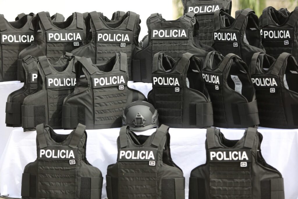 Durán, Guayas. Este jueves el presidente Daniel Noboa entregó más de 11.000 chalecos antibalas a la Policía Nacional, en las instalaciones de la Unidad de Vigilancia Comunitaria de Durán.
