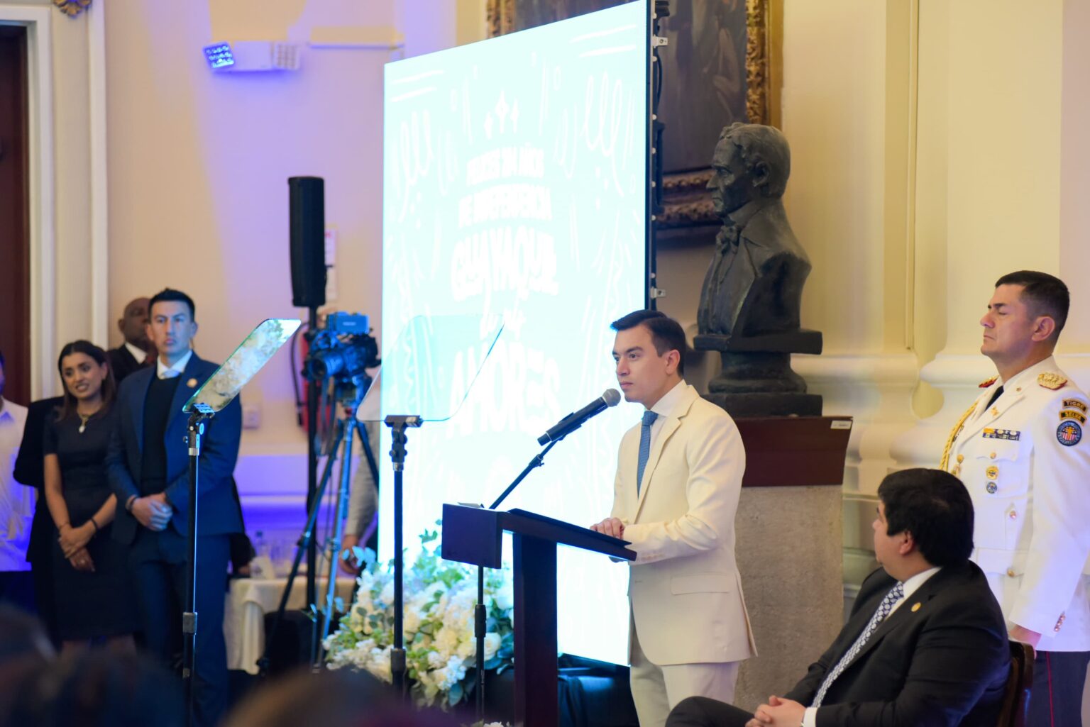 Durante el acto formal, el Jefe de Estado se dirigió a los guayaquileños para exaltar el ejemplo de lucha, perseverancia y visión que esta histórica fecha representa no solo para la ciudad, sino para todo el Ecuador.