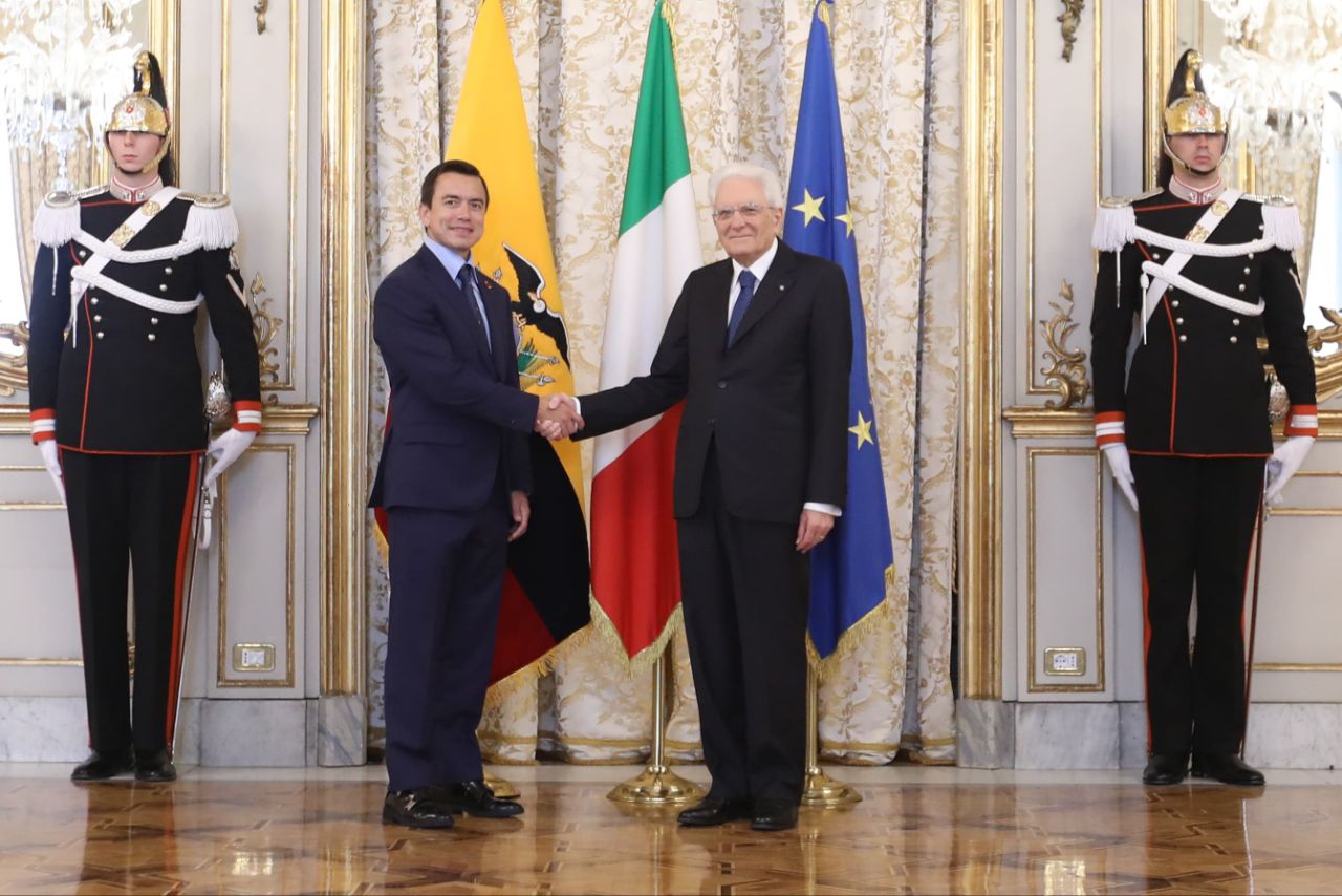 Sergio Matarella, presidente de la República de Italia, recibió al mandatario ecuatoriano en el Palacio de Quirinal. En un encuentro bilateral se expuso el interés del Nuevo Ecuador por crear oportunidades para los jóvenes en el extranjero, en concordancia con los objetivos específicos trazados bajo el liderazgo de Daniel Noboa, mediante espacios de cooperación. La prioridad es evitar que los jóvenes caigan en manos de grupos delictivos debido a la falta de oportunidades y apoyo.