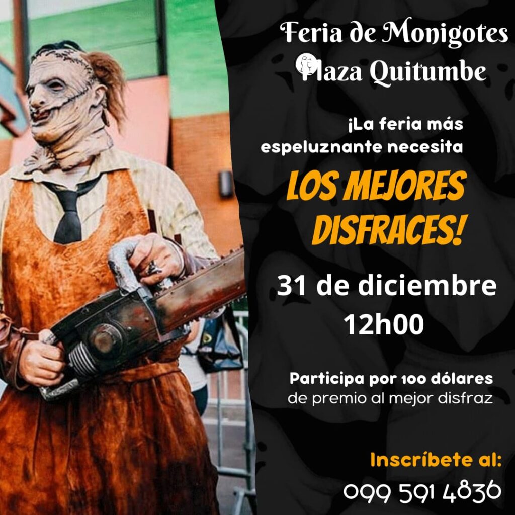 El 31 de diciembre de 2025, a partir de las 12h00, en la Feria de Monigotes más espeluznante del sur de Quito, se realizará el esperado Concurso de Disfraces.