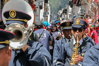 El desfile de los Santos Inocentes contó con la participación de 20 agrupaciones de danza, seis bandas de pueblo, la Estudiantina Cuerdas del Ecuador y la Escuela de Danza Quiteña.
