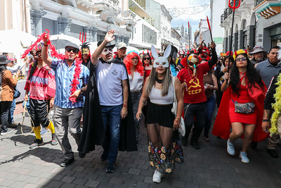 “Los barrios de Quito dijeron: vamos a recuperar la tradición del desfile y el baile de los Santos Inocentes, y eso es lo que hoy estamos viviendo en las calles”, puntualizó el Alcalde.