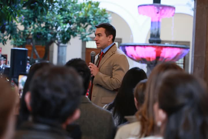 QUITO,ECUADOR.-En un evento lleno de música, tradición e identidad, el alcalde Pabel Muñoz, acompañado de concejales, autoridades municipales y la Banda Municipal, llegó al Palacio de Carondelet para invitar al presidente de la República, Daniel Noboa, a la tradicional Serenata Quiteña. La ceremonia se llevó a cabo en la Plaza Grande en honor a los 490 años de fundación de San Francisco de Quito.
