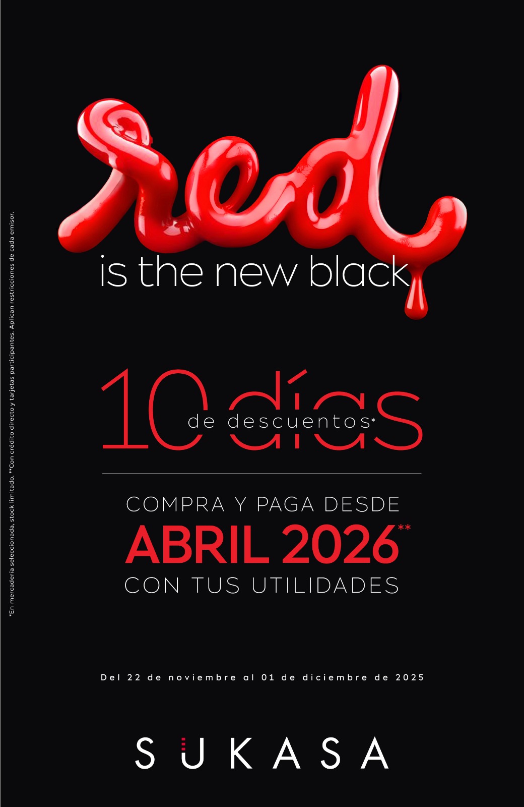 Sukasa da inicio a una de las temporadas más esperadas del año con su campaña “Red is the new black”, una propuesta pensada para que los clientes disfruten del Black Friday con buenos precios y grandes beneficios. Durante 10 días consecutivos, quienes visiten las tiendas a nivel nacional podrán acceder a ofertas especiales en miles de productos del hogar.
