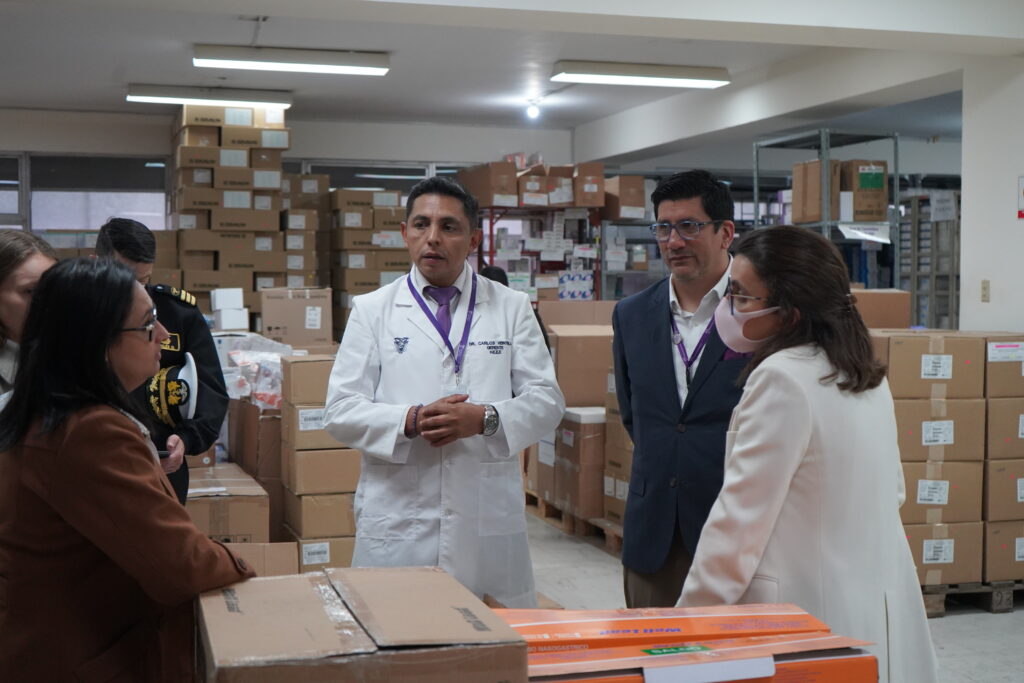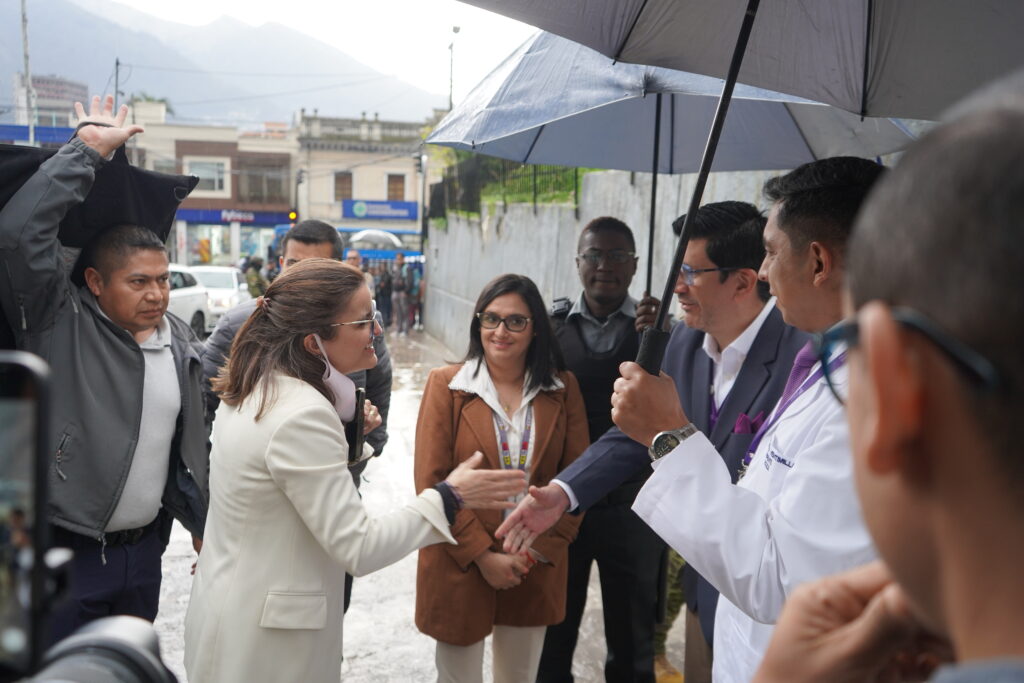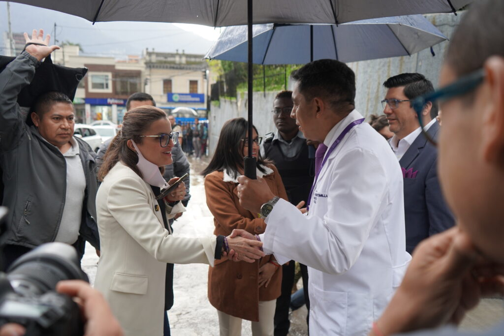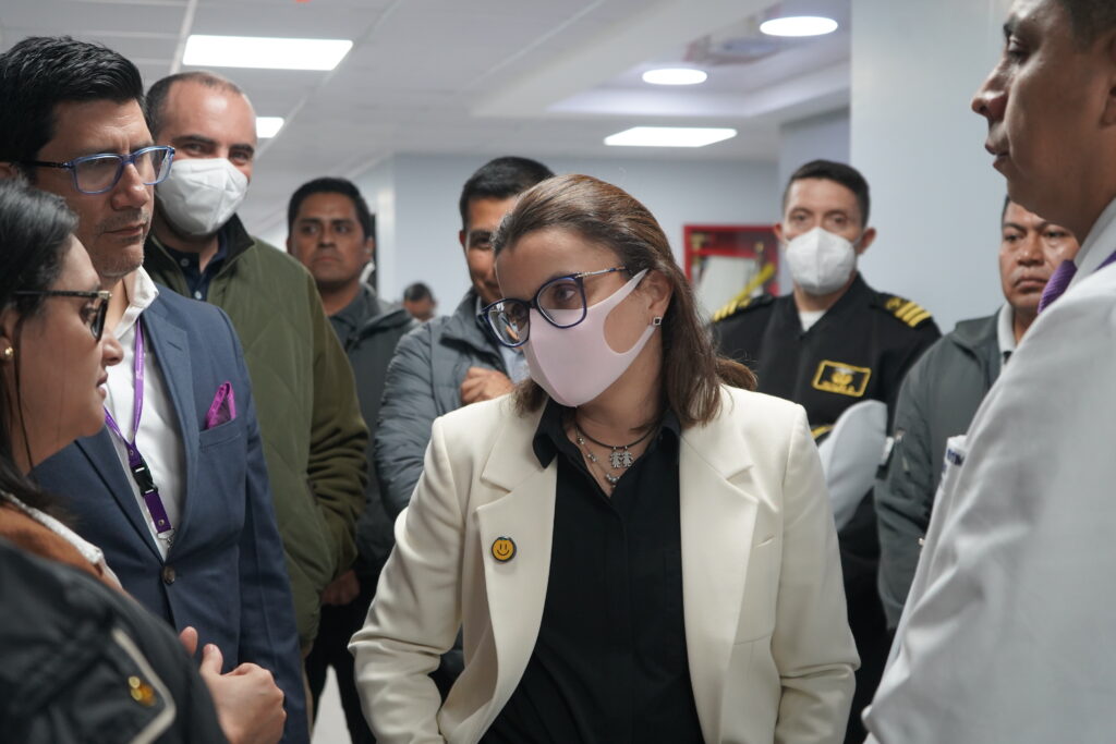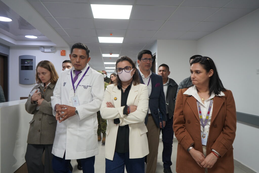 Luego de la primera entrega la vicepresidenta María José Pinto, junto a la viceministra de Atención Integral en Salud, Wendy Gavica y el gerente del hospital Carlos Veintimilla, recorrió varias áreas.